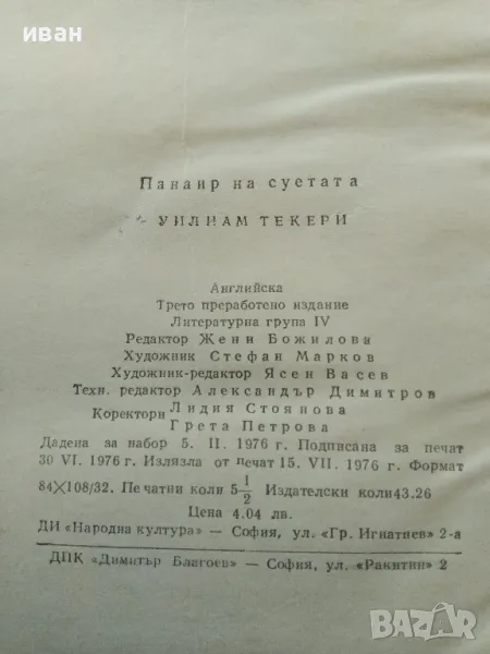 Панаир на суетата - Уилиам Текери - 1976г. → Обява 47894513