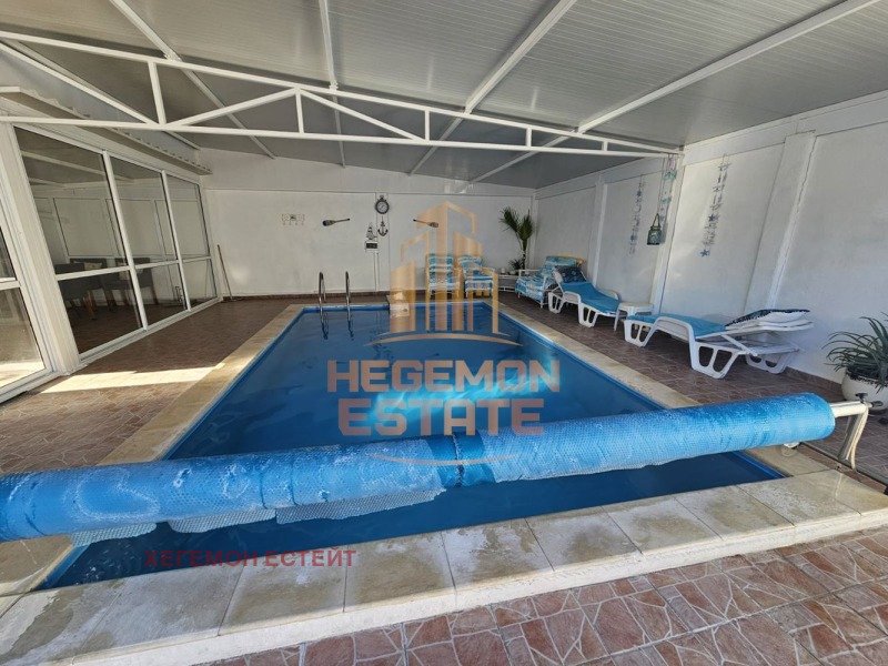 Соколово, област Добрич. Къщата е постоена през 2016 г. и е в парцел от 739 кв.м. Разпределение: голямо входно антре, коридор, всекидневна с кухненска част, три спални, едната от които има собствена баня с тоалетна, втора баня с тоалетна, две остъклени тераси. В двора има закрит басейн, още една лятна стая, сауна и голям гараж. Отоплява се с парно на пилети, като във всички стаи са поставени радиатори. Къщата е обзаведена и оборудвана с качествени мебели и е готова за нанасяне. В двора има много овошни дръвчета и цвета.