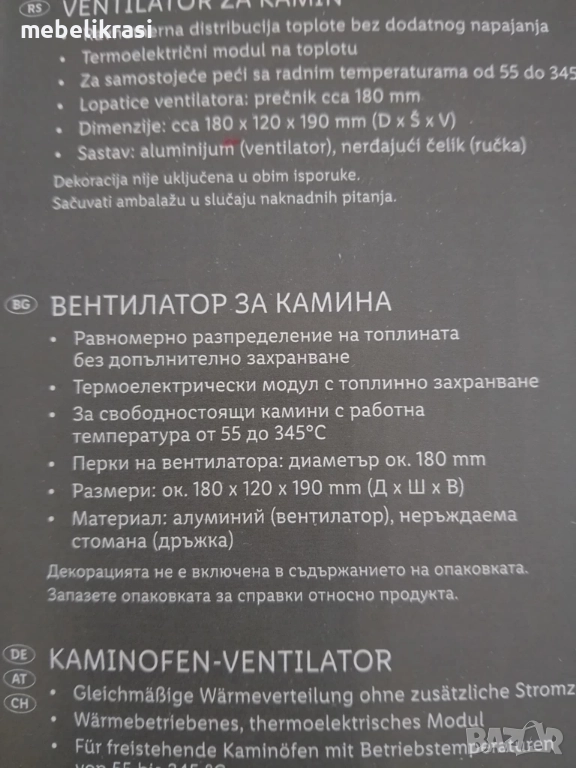 Вентилатор за камина или печка - ново.Наличен!