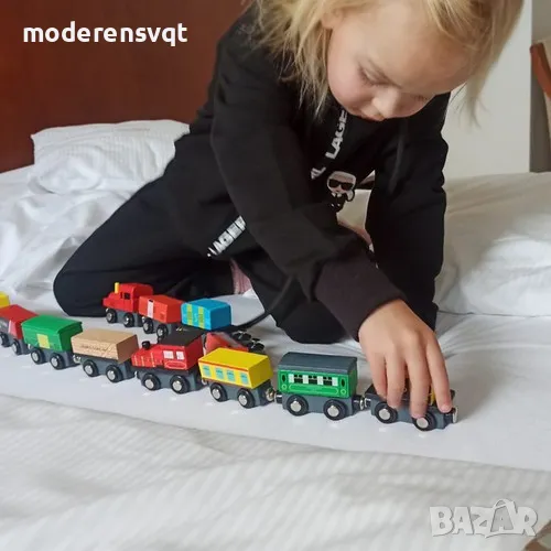ТВЪРД И ИЗДРЪЖЛИВ - влакчето е изработено от висококачествен материал като дърво, което го прави издръжлив и със сигурност ще служи дълго време. Свързване на влакове към вагони с помощта на магнити.