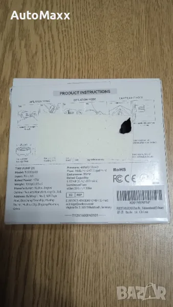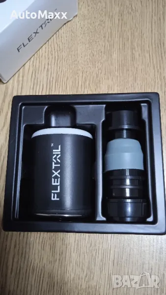 Миниатюрната водоустойчива външна помпа Flextail Tiny Pump 2X постига налягане на въздуха до 4 kPa и дебит от 180 l/min. Помпата е оборудвана с батерия с капацитет 1300 mAh и може да надуе около 10 матрака за кола с едно зареждане.Закупена от Amazon Германия.