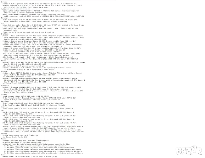Лаптоп Lenovo Thinkpad X220,i5-2520M,16GB RAM,480GB SSD, нова батерия, Coreboot/Seabios