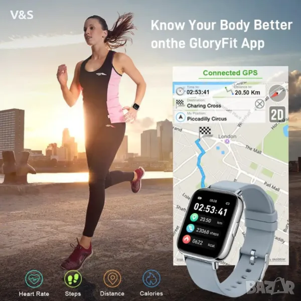 1,69-инчов екран и персонализиран тапет: Фитнес часовникът е оборудван с голям 1,69” TFT екран с резолюция 240 x 280. Гладко изживяване с пълен сензорен екран, здраво и издръжливо 2.5D стъкло. 4 нива на регулиране на яркостта. Инструментът за проследяване на активността е лесен за работа, плавен и отзивчив. Позволява ви да четете времето и данните ясно дори под блясъка. Вече можете дори да персонализирате тапета на вашето устройство чрез ПРИЛОЖЕНИЕТО „GloryFit“, вградени циферблати с повече тапети