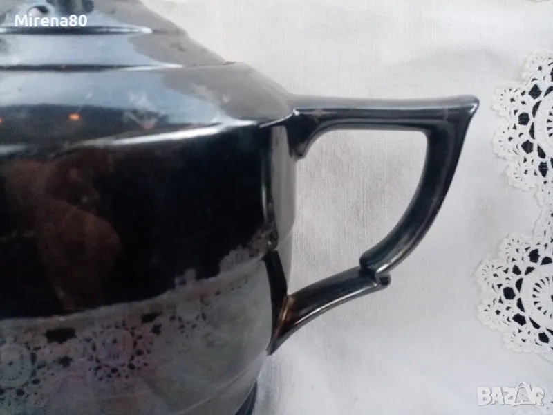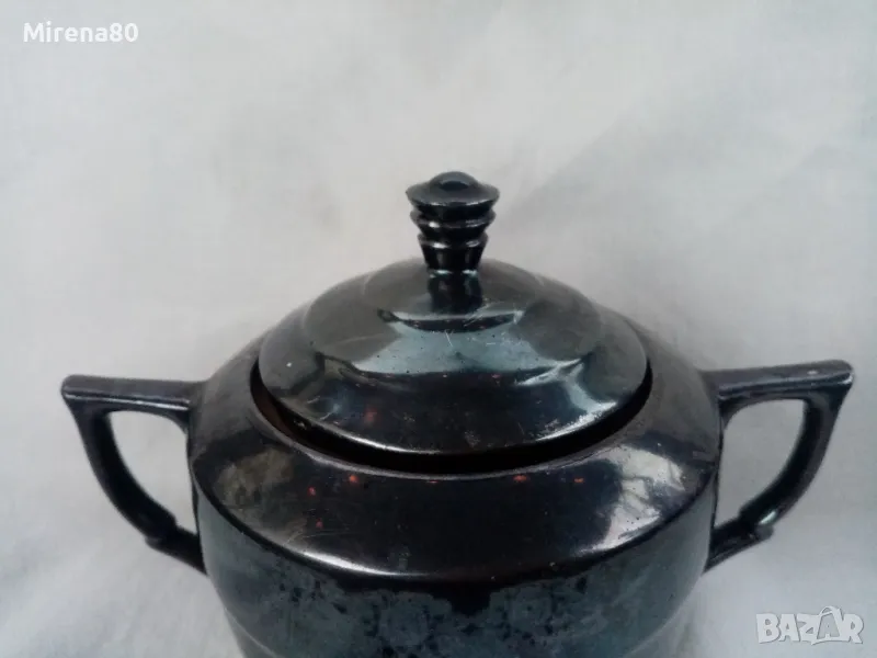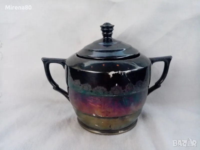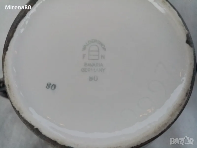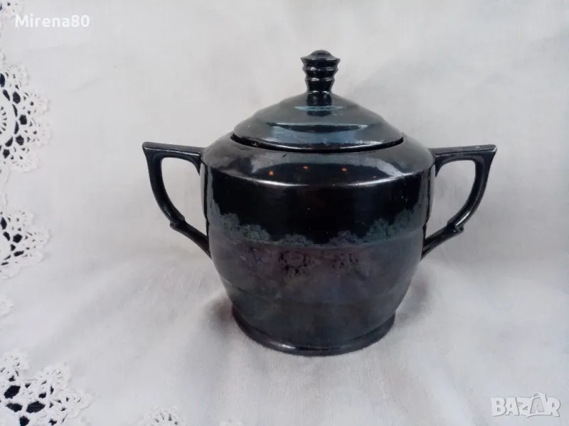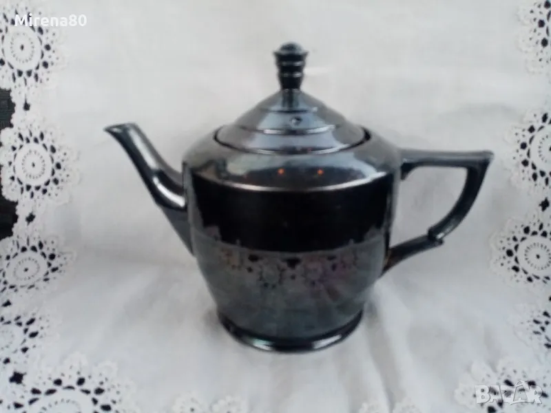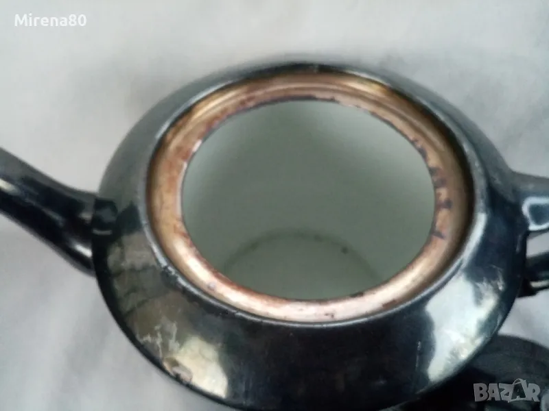 Едно порцеланово дуо, произведено в Бавария през 50-те години на миналия век. Фин лек порцелан с плътно покритие от сребро - много малко са производителите, правили такива изделия. Много красиви и с винтидж излъчване ! Чайникът е с вместимост около 1-1.2 л. Захарницата е с лека промяна на цвета от едната страна, като патина. Не отнема от красотата и. Без чипове и наранявания.