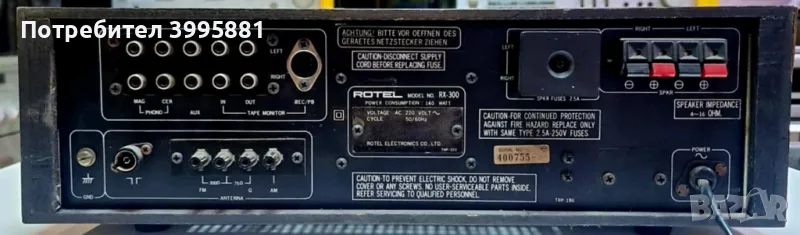 , снимка 5 - Ресийвъри, усилватели, смесителни пултове - 47897893 Винтидж ресийвър на марката Rotel, mod.RX-300