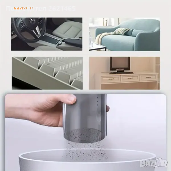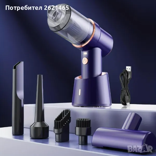 - Преносимата безжична прахосмукачка осигурява силна всмукателна мощност и прави почистването лесно.