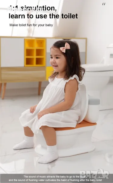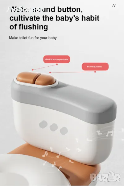 - Звукът на вода и реалистичният дизайн правят времето на тоалетната истинско приключение, което децата ще очакват с нетърпение.