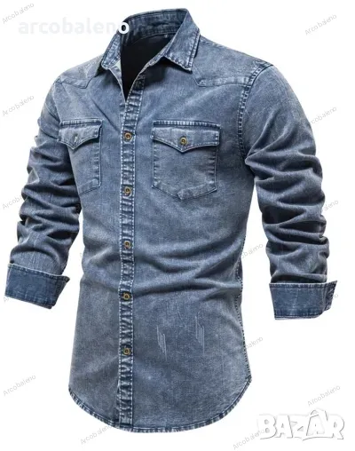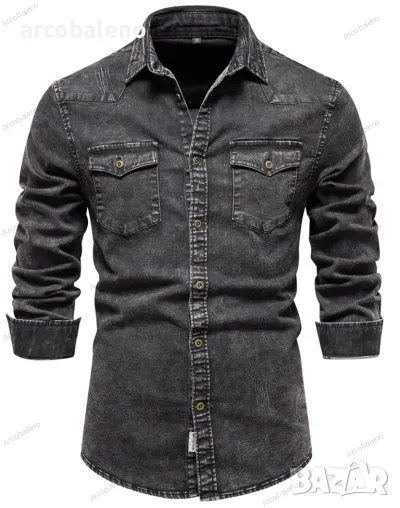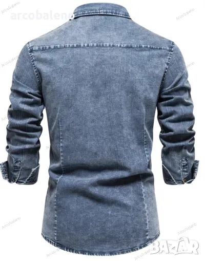 Ежедневна мъжка дънкова риза с дълъг ръкав, 2цвята