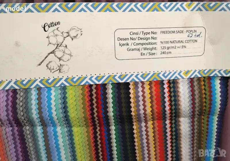 Състав: 100% Памук, 125гр/м2, 64 нишки м2