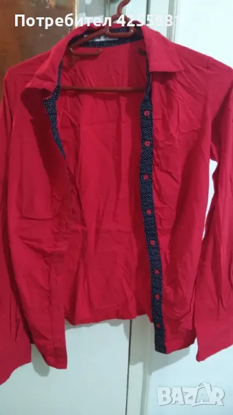 Червена много красива и стилна риза.подходяща за панталон също така и за дънки.