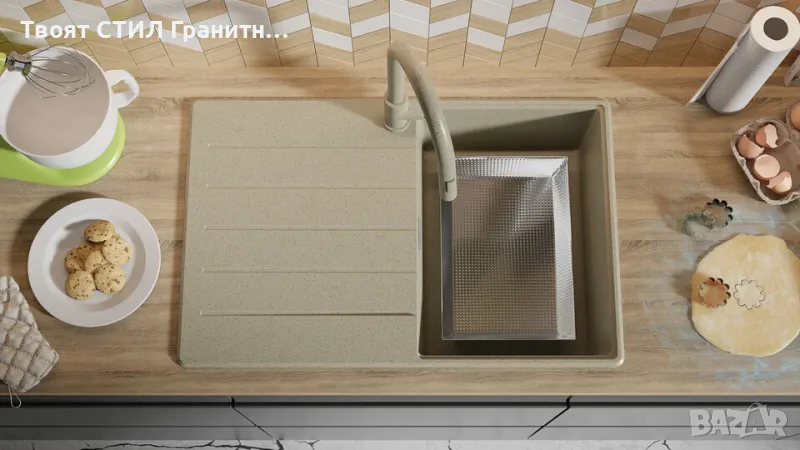 беж кухненска мивка от гранит Копенхаген 780х500 Top 50 → Обява 47903858
