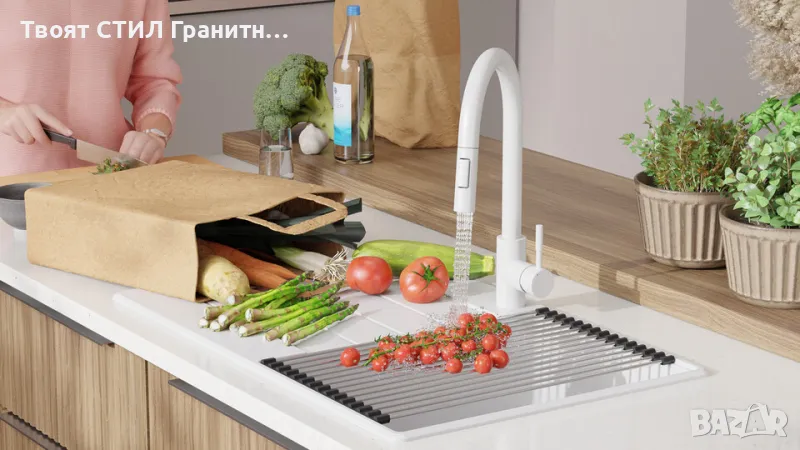бяла кухненска мивка от гранит Копенхаген 780х500 Top 50 → Обява 47903875