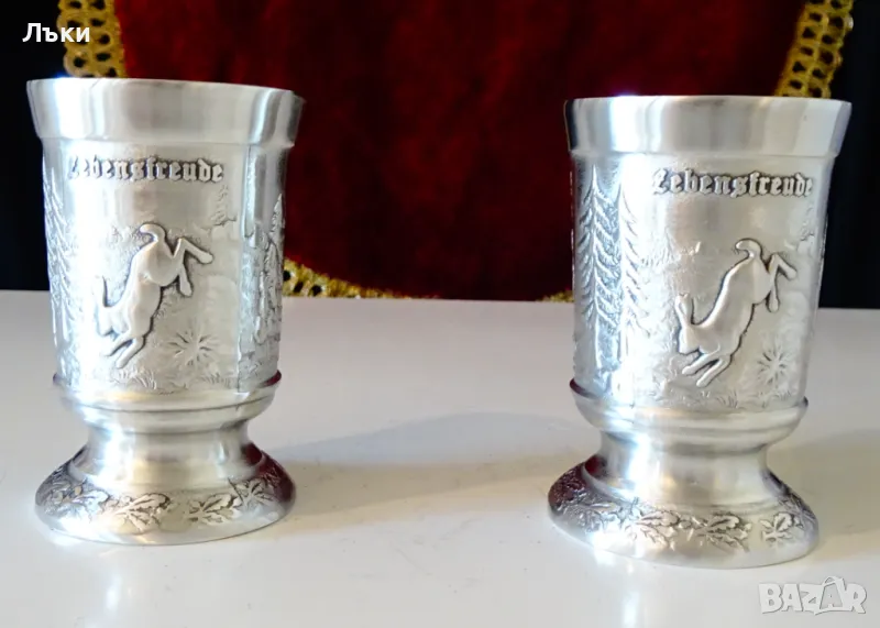 знак за високо качество. Декорирана с релефен портрет на Ловец,който пуши лула и заек - който се радва на живота в красива горичка.Височина 6.5 см., диаметър 4 см., тегло 70 гр. Вместимост 60 мл.Налични 2 броя,цена 29 лв.,за брой.