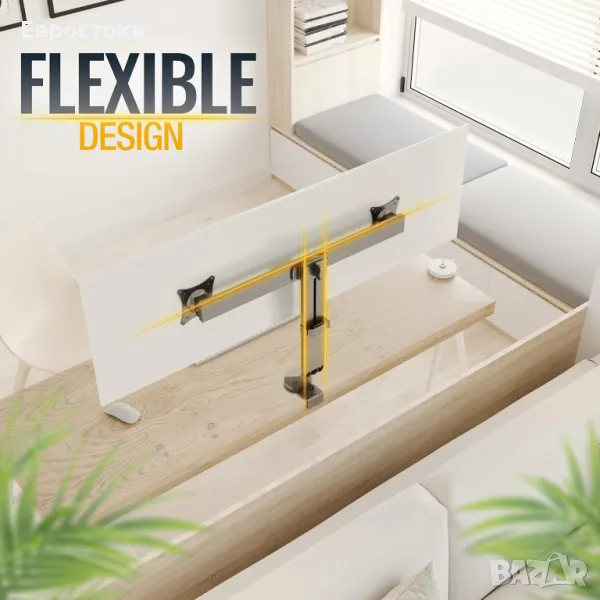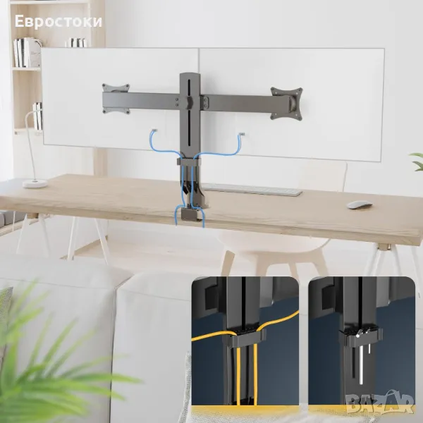 EI: Максимална товароносимост 7 кг на рамо. Поддържани стандарти VESA 75x75 100x100. Максимална ширина на екрана 650 мм. Стойката е подходяща и за извити екрани