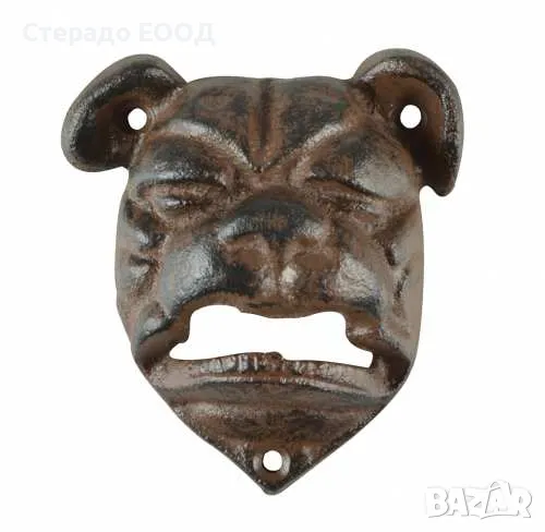 Чугунена отварачка за бутилки с формата на глава на булдог. Тежи около