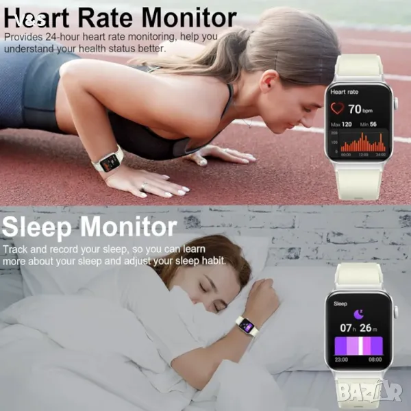 1,85" HD сензорен екран и 200+ Направи си сам циферблата: Този дамски интелигентен часовник е оборудван с 1,85" HD пълен сензорен цветен екран, осигуряващ силно реагиращо докосване, което може да ви донесе уникално визуално и по-добро интерактивно изживяване. С придружителя GloryFit можете да изтеглите повече от 200 безплатни персонализирани циферблата и да го зададете като свой работен плот. Освен това можете да изберете любимата си снимка като семейна, селфи, снимка на домашни любимци, пейзажна снимка, вашата кола като тапет във вашия смарт часовник.
