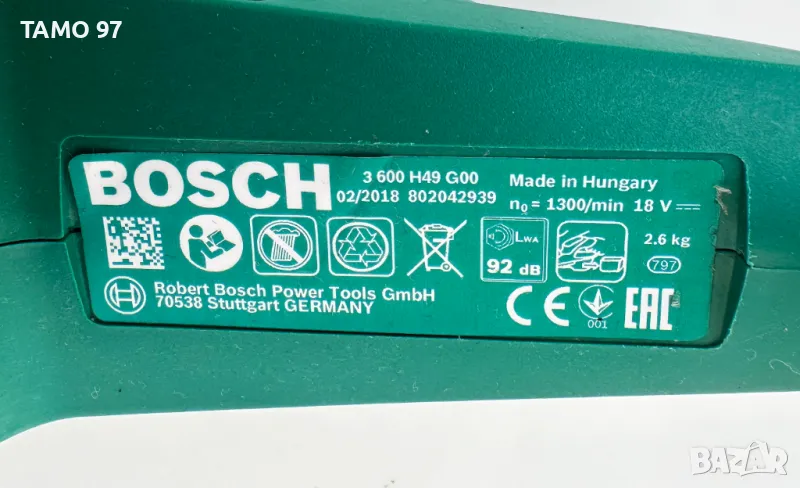 акумулаторен храсторез на Бош за жива плет и храсти като нов без следи от използването и също така работи перфектно, оригинално унгарско производство внос от Франция. Обявената цена е за машината с предпазителя, без батерии и зарядно.