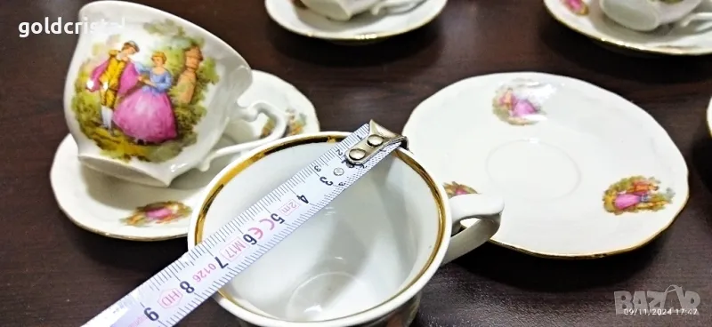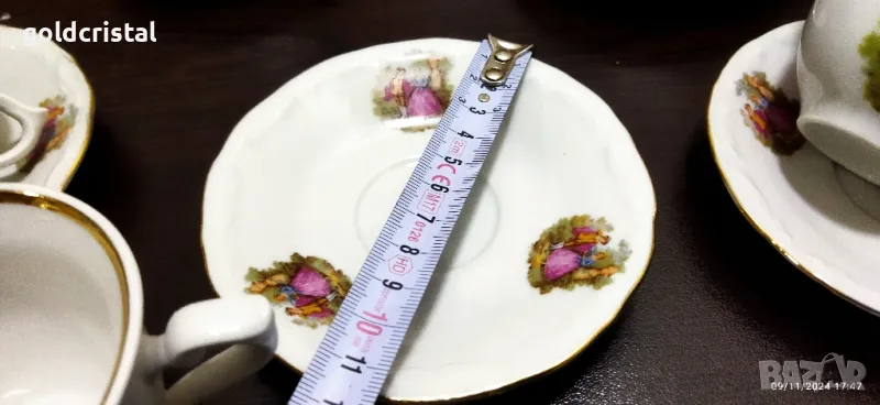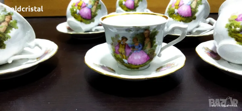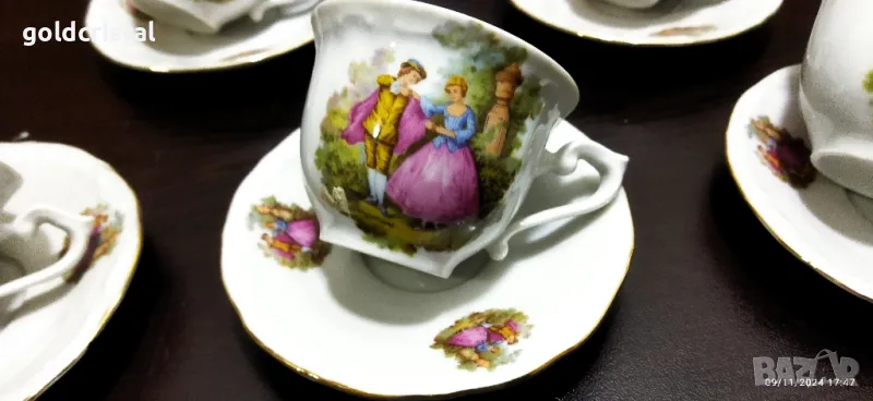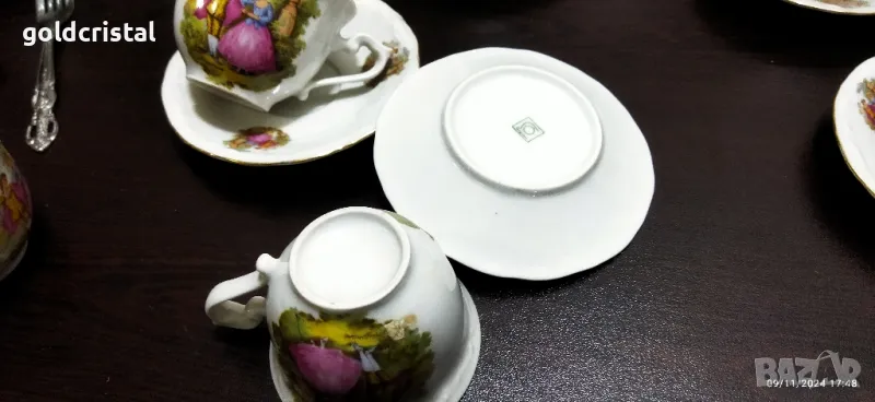 Стар български порцелан Изида чаши за кафе Ромео и Жулиета неизползвани една чинийка отдолу чукнато сервиз комплект сет лот ретро арт декор винтидж колекция стари старинни антикварни предмети обзавеждане за дома и семейството подходящи за подарък за ценители и колекционери