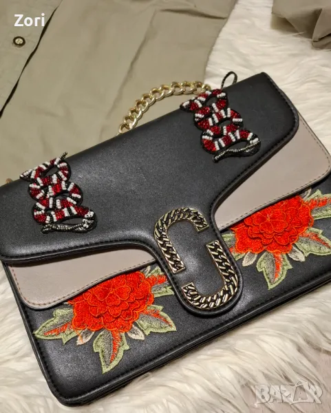 СТРАХОТНА черна чанта с 3Д апликации → Обява 47909122