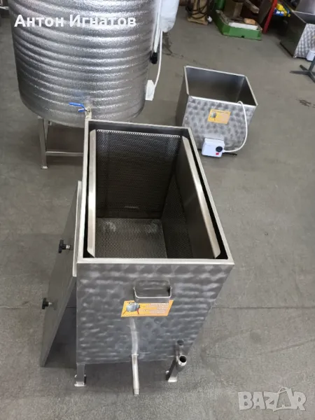 Парна восъкотопилка система Фарар. Парна восъкотопилка фарар. Восъкотопилка предназначена за магазинни рамки с капацитет от 32 р. с уширител или 46 бр. без уширител. Дебелина на ламарината 1.25 мм. Производство на висококачествен пчеларски инвентар и машини и съоръжения за хранително-вкусовата промишленост и селското стопанство.