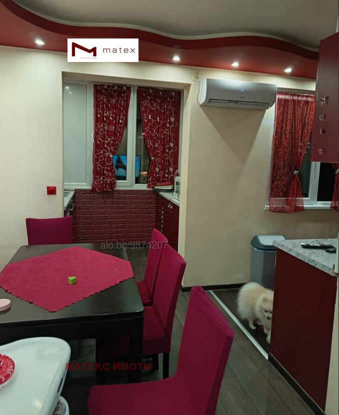 Агенция за недвижими имоти Матекс имоти и брокер Петя Касабова Ви предлага тристаен ( с четири отделни стаи) апартамент в Кайсиева градина. Жилището се намира в панелна сграда на етаж пети от осеметажна сграда с асансьор. Разпределение: коридор, Г-образна кухня с усвоена тераса, хол, две спални, тераса, килер, баня и тоалетна отделно. Към имота има прилежаща маза. Трите стаи са с изложение югозапад, само кухнята е на север. Жилището е с топла централна вода. Продава се частично обзаведен. Пред блока има много места за свободно паркиране. Отлична локация. Може да разчитате на Агенция 'Матекс' за професионални консултации, подготовка на нужните документи за закупуване на желаният от вас дом, както и съдействие за отпускане на банков кредит при най-добри условия. За повече информация и огледи: Петя Касабова 0878 615405 или 0888 426491. Моля цитирайте следния код на офертата: VN 4610