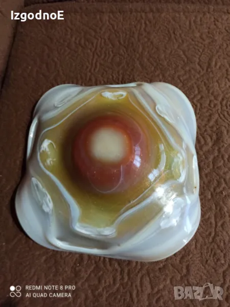 Много красива Стъклена купа фруктиера чиния от кристално стъкло тип мурано ръчна изработка преливащи цветове. Мисля, че се води опалово стъкло. подходяща за подарък за ценители и колекционери