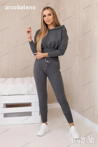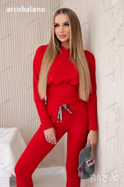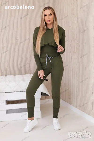 Представяме ви комплект от блуза и панталон. Блузата и панталона са с широки ръбове. Панталон с джобове и връзка на талията. Комплектът е изработен от висококачествен материал. Размерът е универсален и ще бъде подходящ за дами с размери S, M или L.