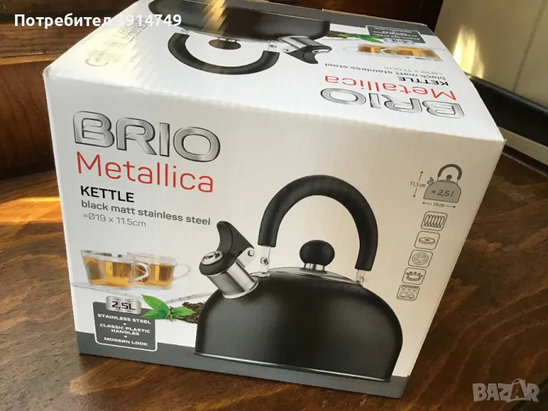 Чайник със свирка, капак и сгъваема дръжка; неръждаема стомана (инокс), 2,5 л, НОВ → Обява 47912903
