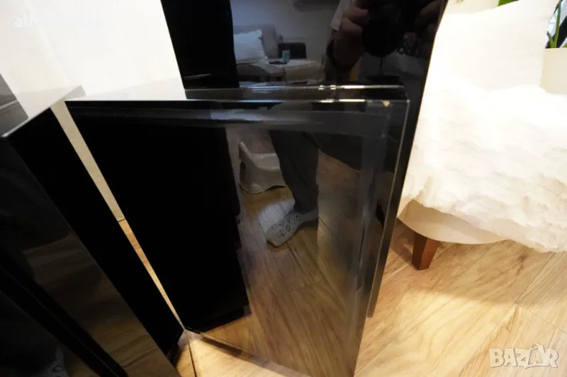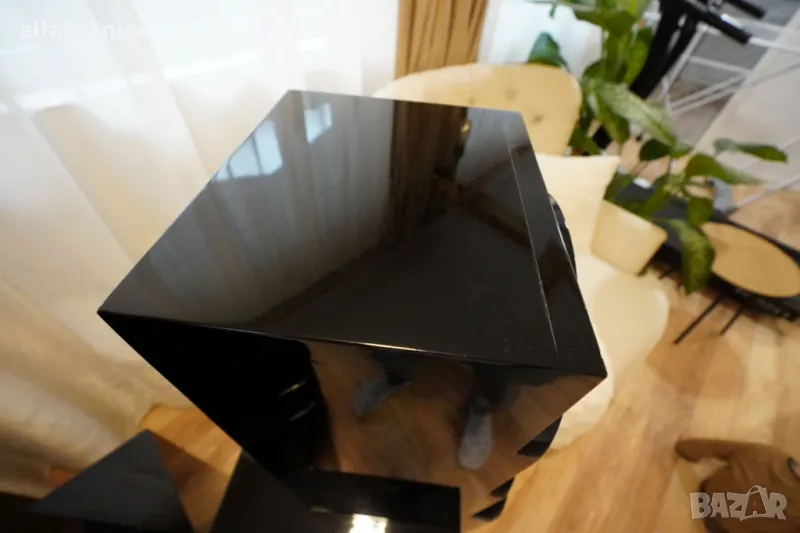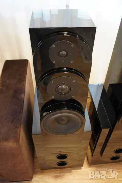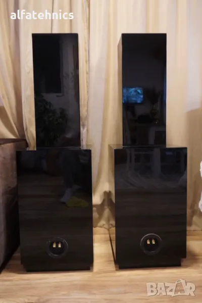 Тонколони са използвани около 4 години. Имат козметични забележки по финиша. С годините има потъване на лака на няколко места, но няма нищо фрапиращо - забележимо от много близко разстояние. Няколко други по фрапиращи козметични забележки на снимките. Предварително се извинявам за лошото качество на снимките, изключително трудни за фотографиране, всичко се отразява.