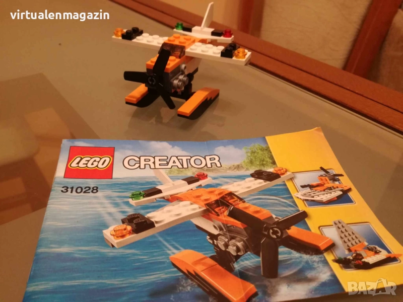 Конструкторът е 3 в 1 - т.е от елементите му могат да се сглобят 3 различни модела (2 самолета и лодка)