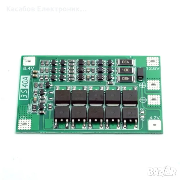 Модул за управление на зареждането и разреждането на литиево-йонни батерии BMS 3S. Платката има вграден баланс и позволява максимален разряден ток от 40А и заряден ток от 20А. Перфектен е за ремонт на устройства с висока консумация на енергия.