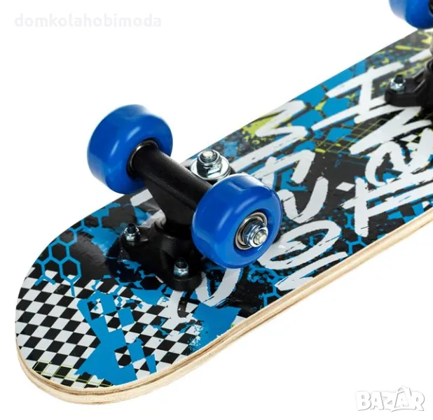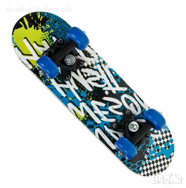 - Описание - Характеристики Спортен скейтборд син с бели букви.