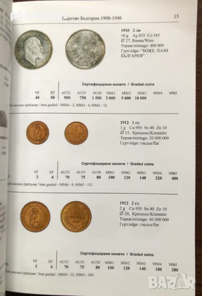 Цветни илюстрации, цени за сертифицирани монети до 1943.