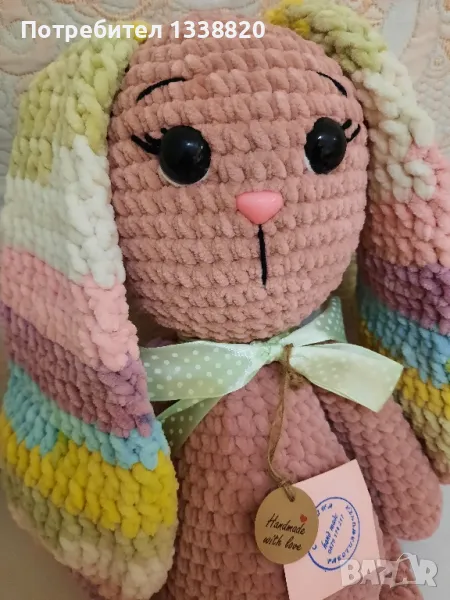 Ръчна изработка плюшено зайче, снимка 1 - Плюшени играчки - 47917641 Ръчна изработка плюшено зайче, снимка 2 - Плюшени играчки - 47917641 1/2