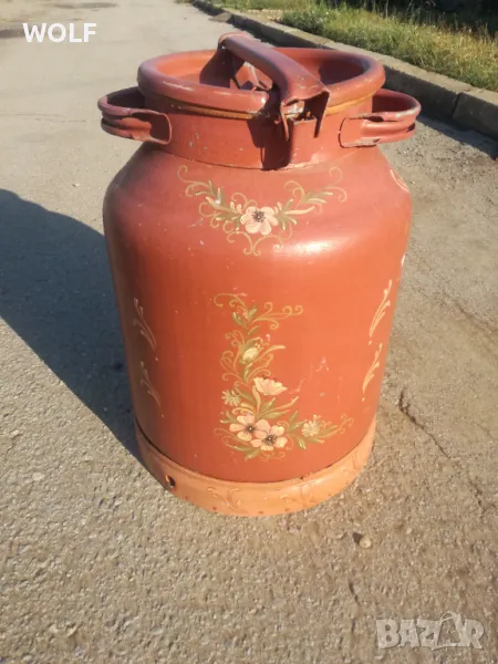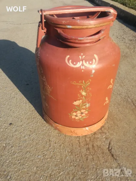 Гюма е внос от германия изрисуван с маслени бои материал алумин,побира 40-50литра приблизително, идеален за декор интериор както и за съхранение на мляко.