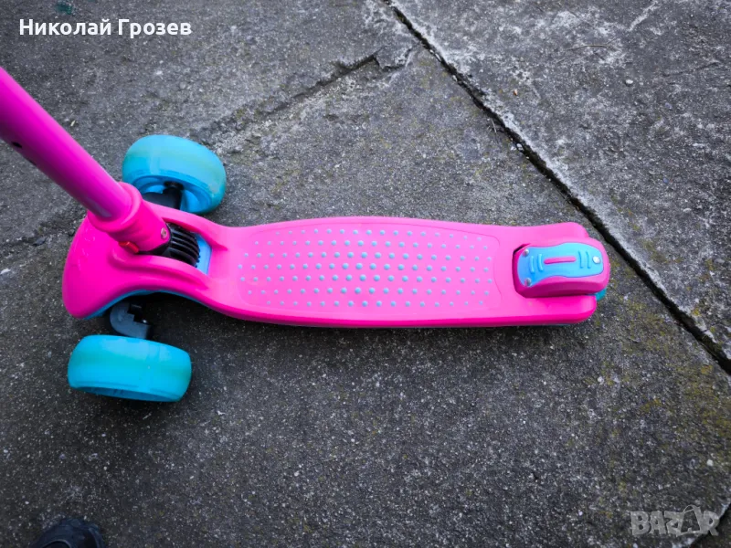 Неплъзгаща се палуба - набраздената повърхност предотвратява хлъзгане и осигурява високо ниво на безопасност . Големият борд на тротинетката осигурява стабилност - дори за начинаещи .