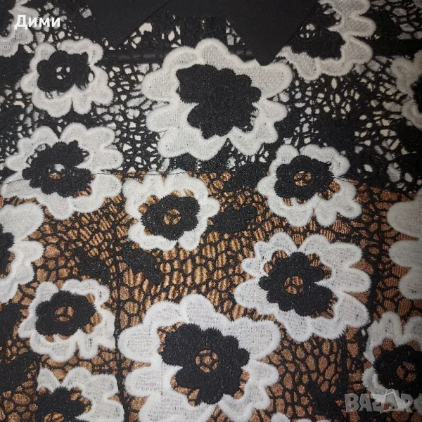 Официална рокля с рязана дантела, подплата в златен цвят и черен тюл.С яка и на гърба.Чисто нова с етикет.Продавам я на половин цена