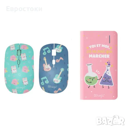 Комплект включва: безжична мишка : мишка Wondee + допълнителен сменяем калъф за мишка + външна батерия Powerbank 4000 mAh.