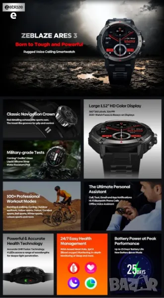 Zeblaze Ares 3 Pro е надежден смартчасовник, който съчетава производителност и функционалност. Това е идеалният часовник за активни потребители, който осигурява пълна поддръжка както за тренировки, така и за ежедневието.