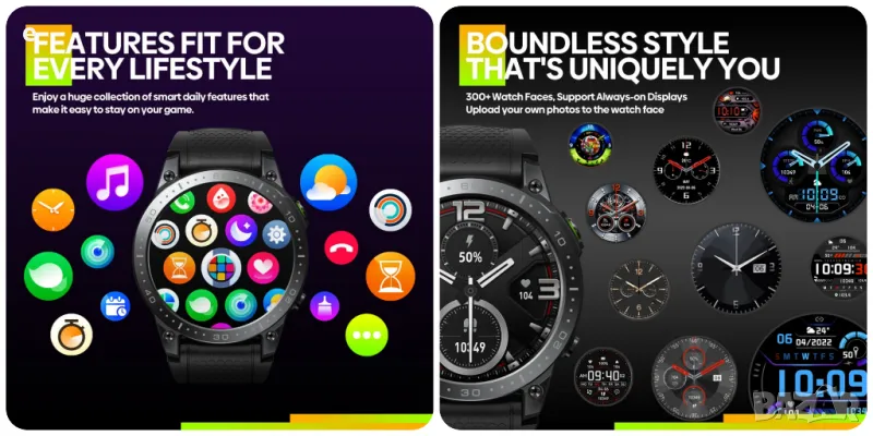 -Температура на работа:От -40° до 55°C (температури под -40°C могат да повлияят на живота на батерията и работата на смарт часовника)