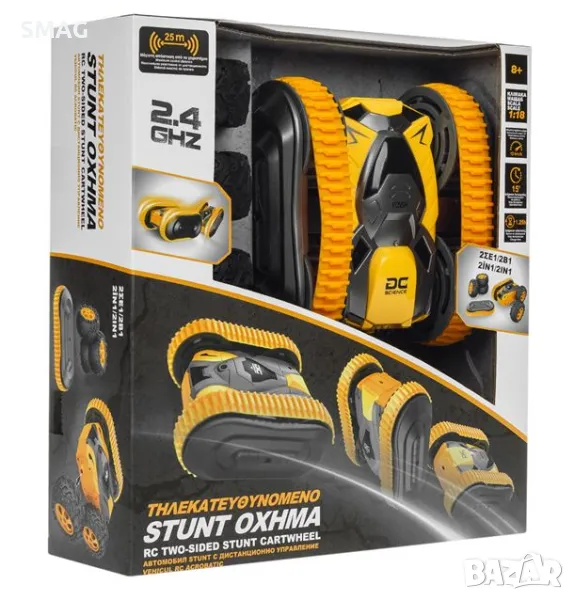 RC превозно средство с 4 големи колела, които може да сменяте с 2 пълзящи вериги. Развива максимална скорост от 12км/ч. Време за зареждане 1.25h, време за работа 15 минути. Работи с 1 батерия 3.7V 500mAh за автомобила (включена) и 2 батерии AA за контролера (не са включени).