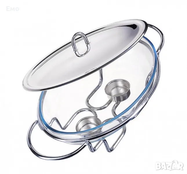 Съд за затопляне Bohmann, 3л. Овал, 2 Свещи, Стоманен капак, Стъкло, Инокс → Обява 47923002