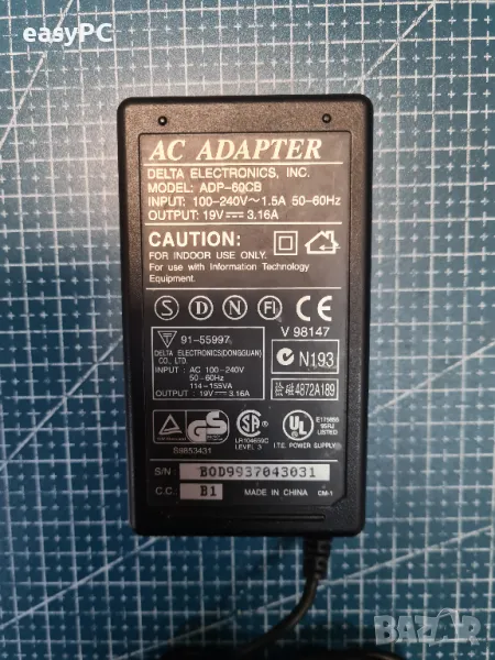 Продавам оригинален захранващ адаптер DELTA ELECTRONICS, INC 19V 3.16A ADP-60CB. Адаптера е употребяван, но е напълно