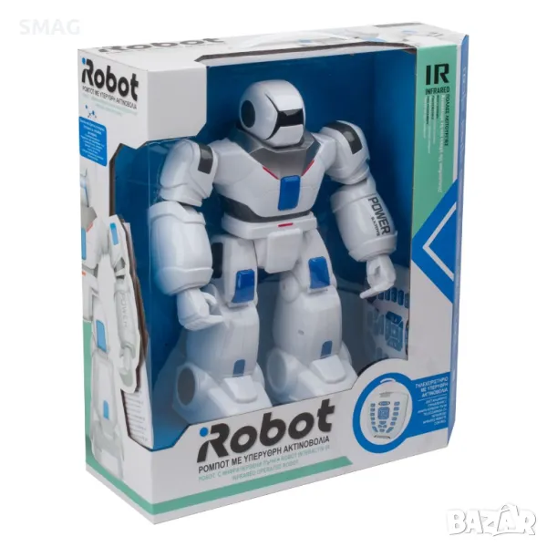 Инфрачервена играчка робот. Открийте новата ера на интелигентността с робота, който движи ръцете си, танцува, пее и разказва истории на английски. Има инфрачервено управление. Очите му светят с LED светлини и той може да ви приспива на езика на роботите. Захранва се от 2 x AAA батерии за контролера (не са включени) и 1 x 400MAH 3.7V литиева батерия за робота (включена).