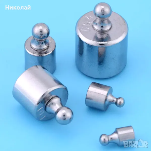 Комплект от 5 броя Теглилки от 1 грам , 2 грама , 5 грама , 10 грама и 20 грама. изработени са от метал . Можете да калибрирате и