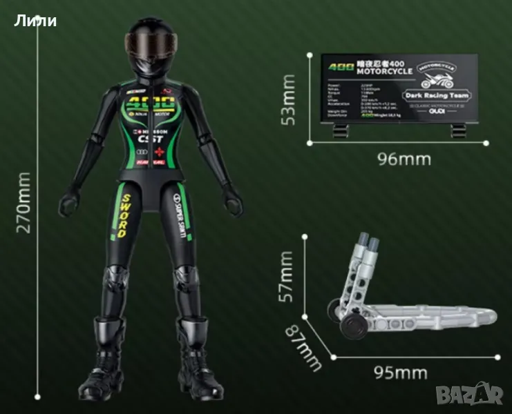 Брой части: 908;Размери на кутията: 34см(височина), 50см(ширина), 10см(дължина).Възраст: Подходящ за деца и възрастни над 10 години;Комплектът включва: Части за мотоциклет и допълнителна фигурка;Лесно сглобяване: Следва инструкции с ясно обозначени стъпки;Материали: Висококачествени, безопасни за деца.