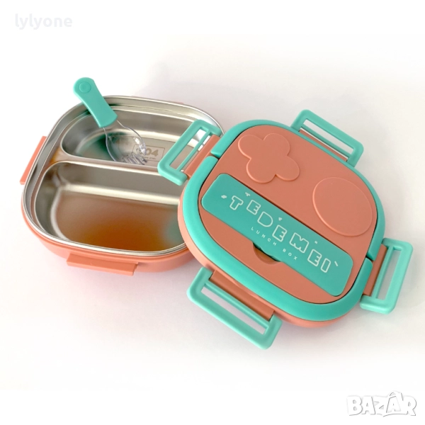 Термо кутията се затваря капак с вградено силиконово уплътнение за предотвратяване на изтичане. В капака - се съхранява прибор за храна, към комплекта.