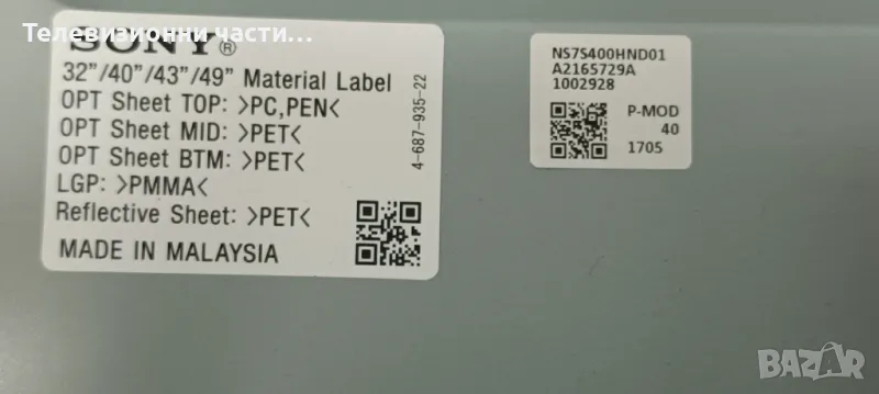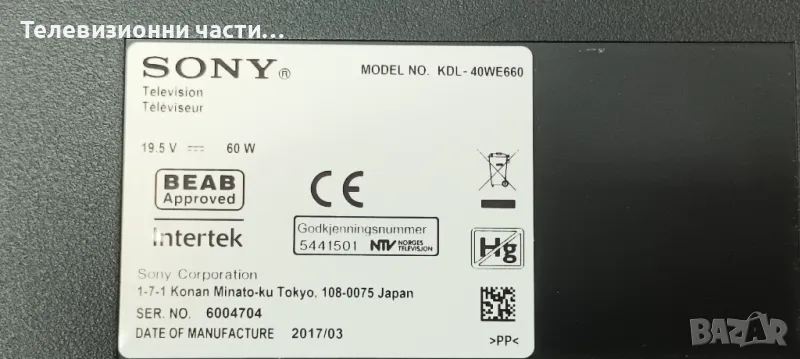 Sony KDL-40WE660 със счупен екран NS7S400HND01-1-981-541-21/1-981-455-11/17Y40_7020_24_REV02_160720