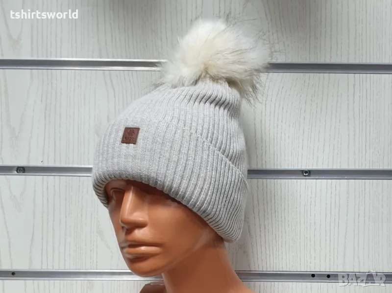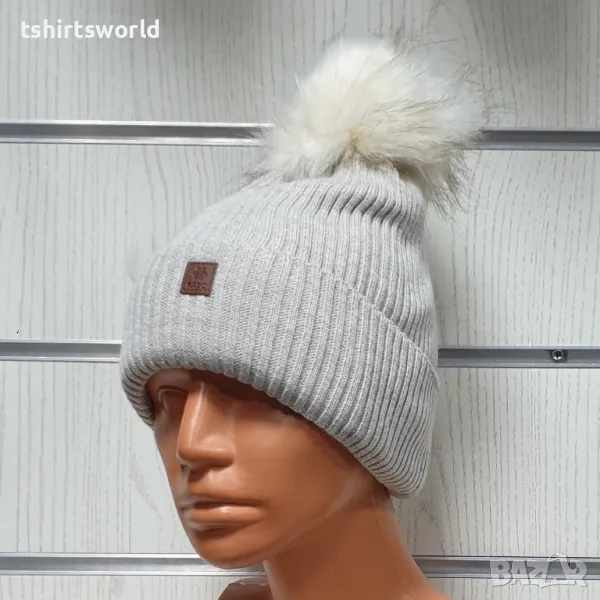 Уникална, функционална, универсална, стилна и модерна нова зимна топла дамска шапка Silver Star в бежов цвят и пух/помпон.