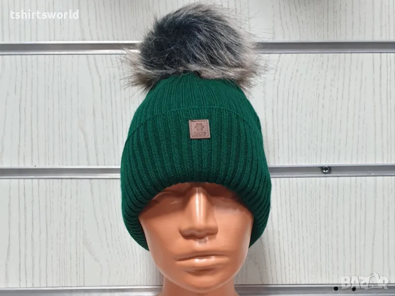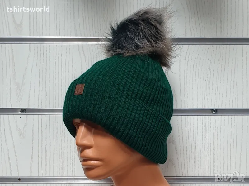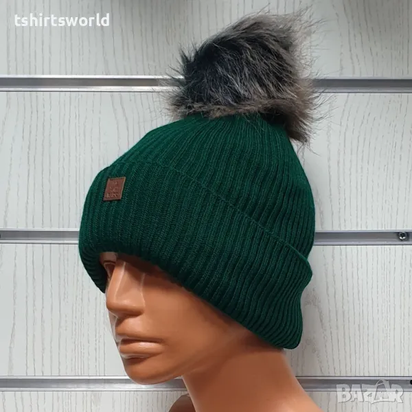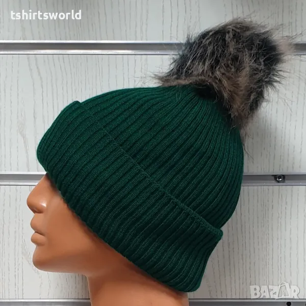 Нова зимна топла дамска шапка Silver Star в зелен цвят с пух/помпон → Обява 47926771